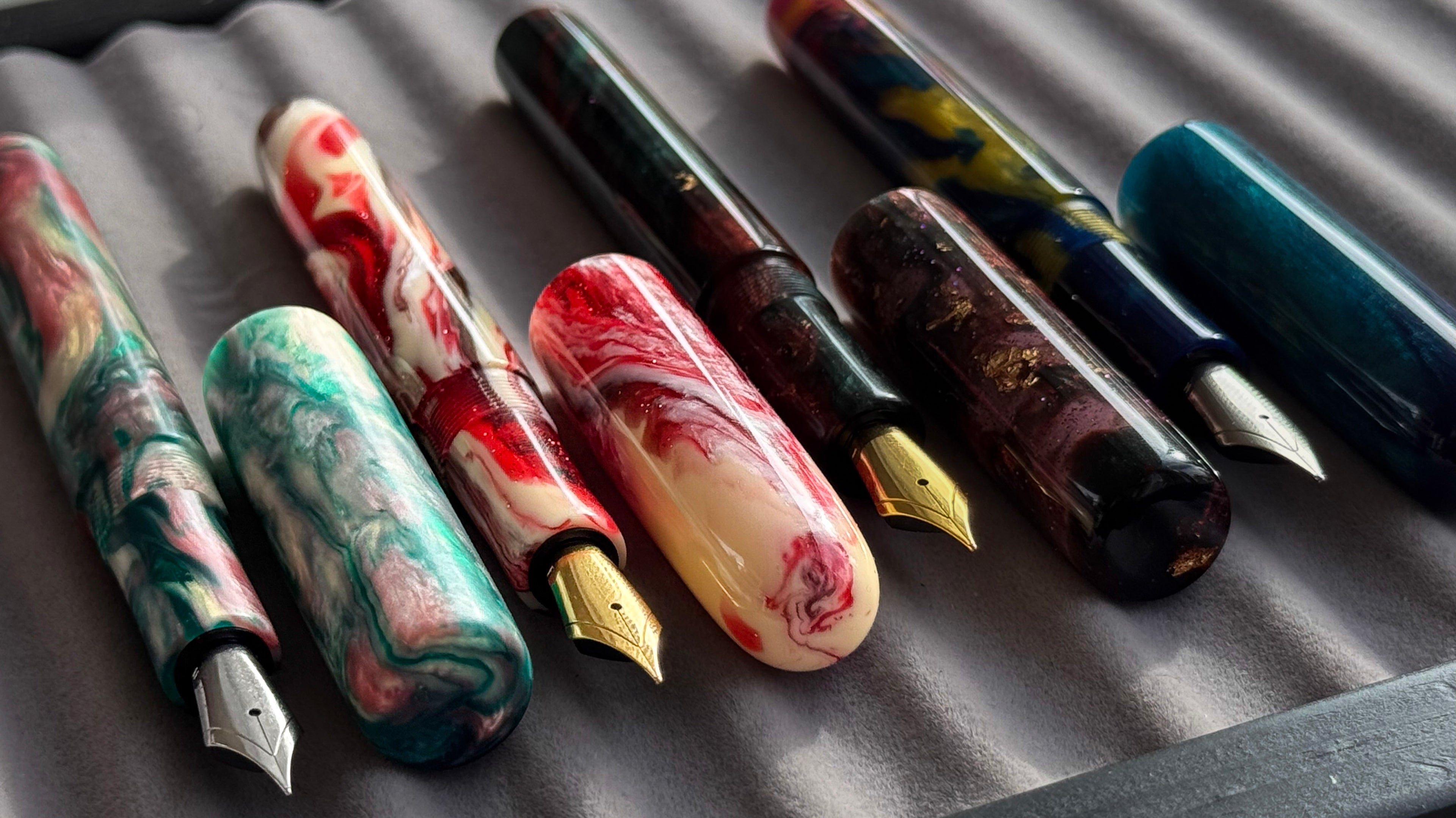 I offer custom-made pens on request, crafted individually to match your vision. As part of the process, you can also choose from our own Leonsblanks, available in a variety of unique colors and styles. Each piece is carefully turned and finished by hand, resulting in a writing instrument as personal as your story.